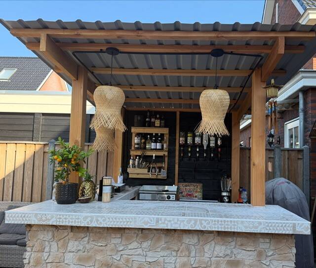 Buitenkeuken op maat gemaakt, geheel naar de wensen van de klant. Alles bij de hand, alles op maat.