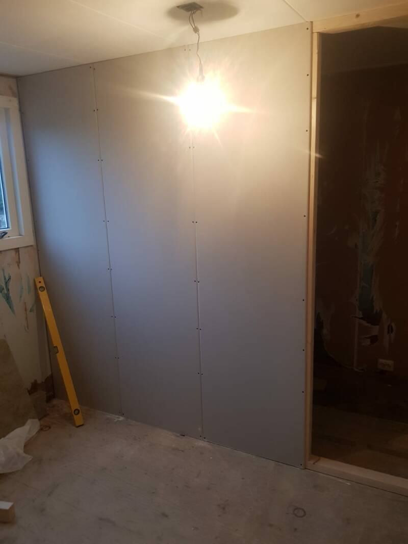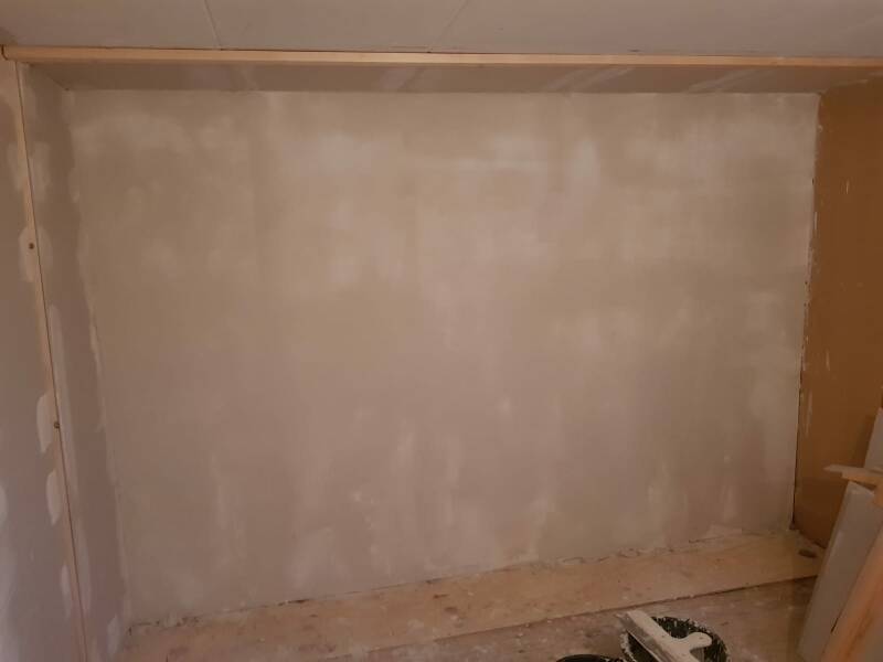 Een extra wand geplaatst in een stacaravan, voorzien van isolatie.